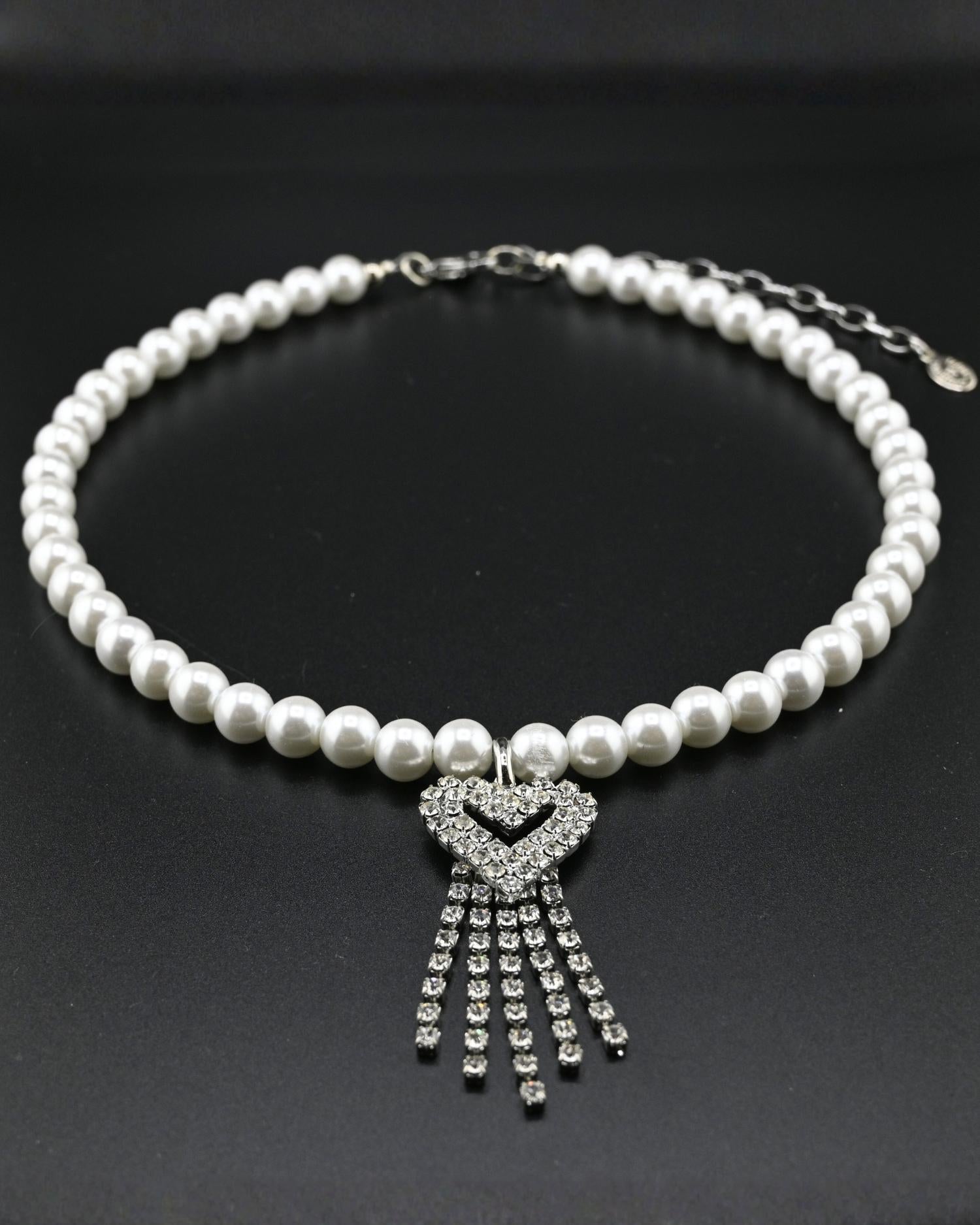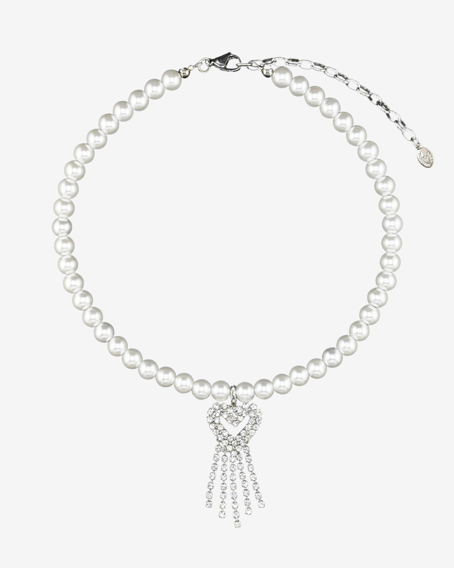 Our classic Crystal Cascading Heart Pendant on simple pearls makes a chic statement with any look.