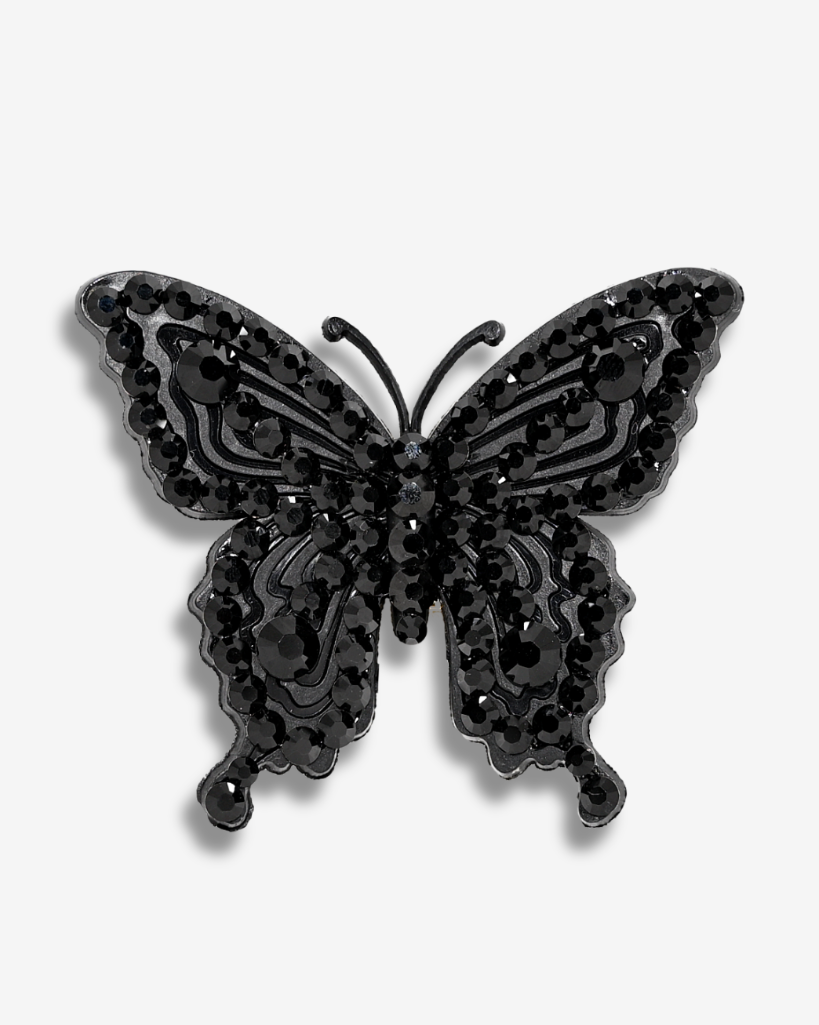 Nylon resin butterfly with Swarovski Crystal embellishment on adjustable gold metal band. This statement ring perfectly capture Tarina's signature blend of whimsical elegance and will be turning heads and starting conversations everywhere you go.