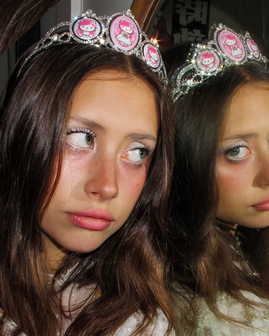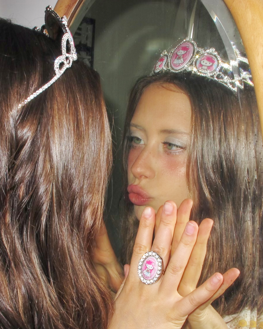 Handcrafted with Swarovski Crystal and Hello Kitty x Tarina Tarantino "Pink Head" Cameos, metal combs at back.