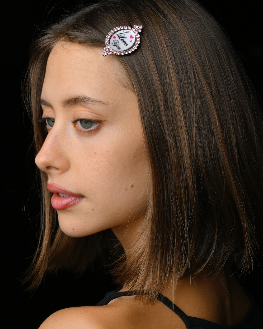Let your jewelry do the talking with this vintage-style hair barrette with Swarovski crystals and our exclusive "I Love You" cameo. Classic French-style ball-and-stem barrette clasp keeps hair in place all day.