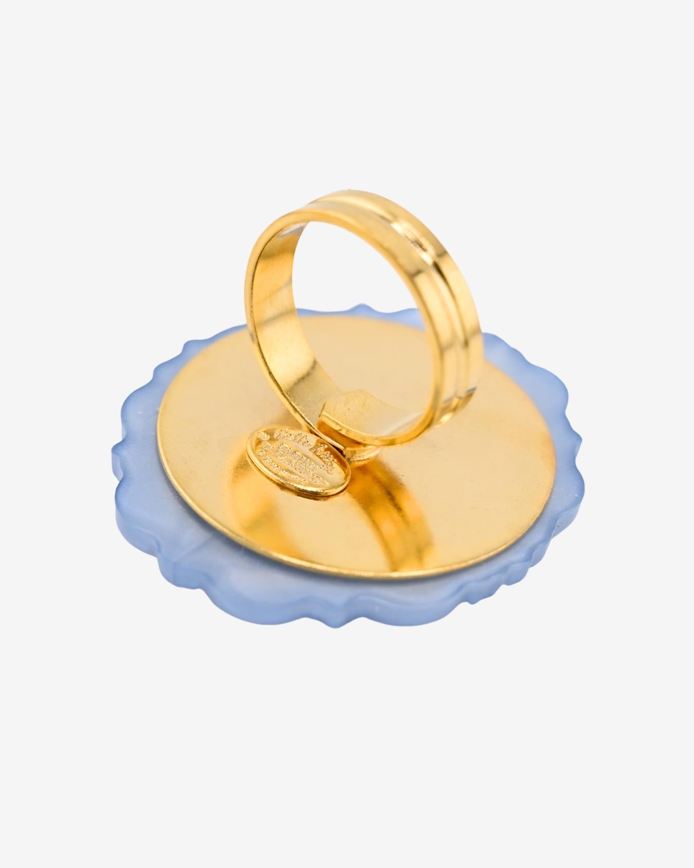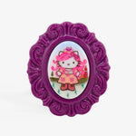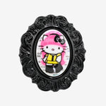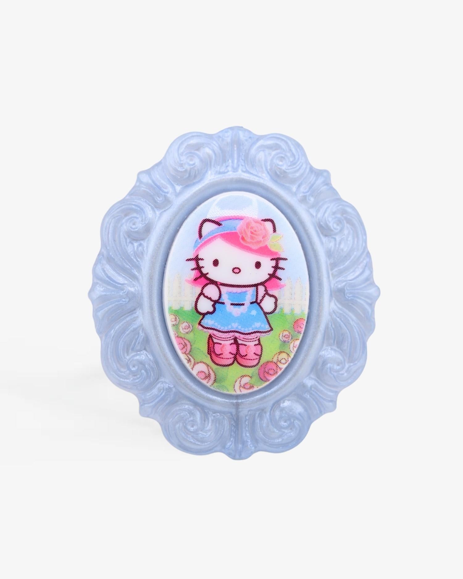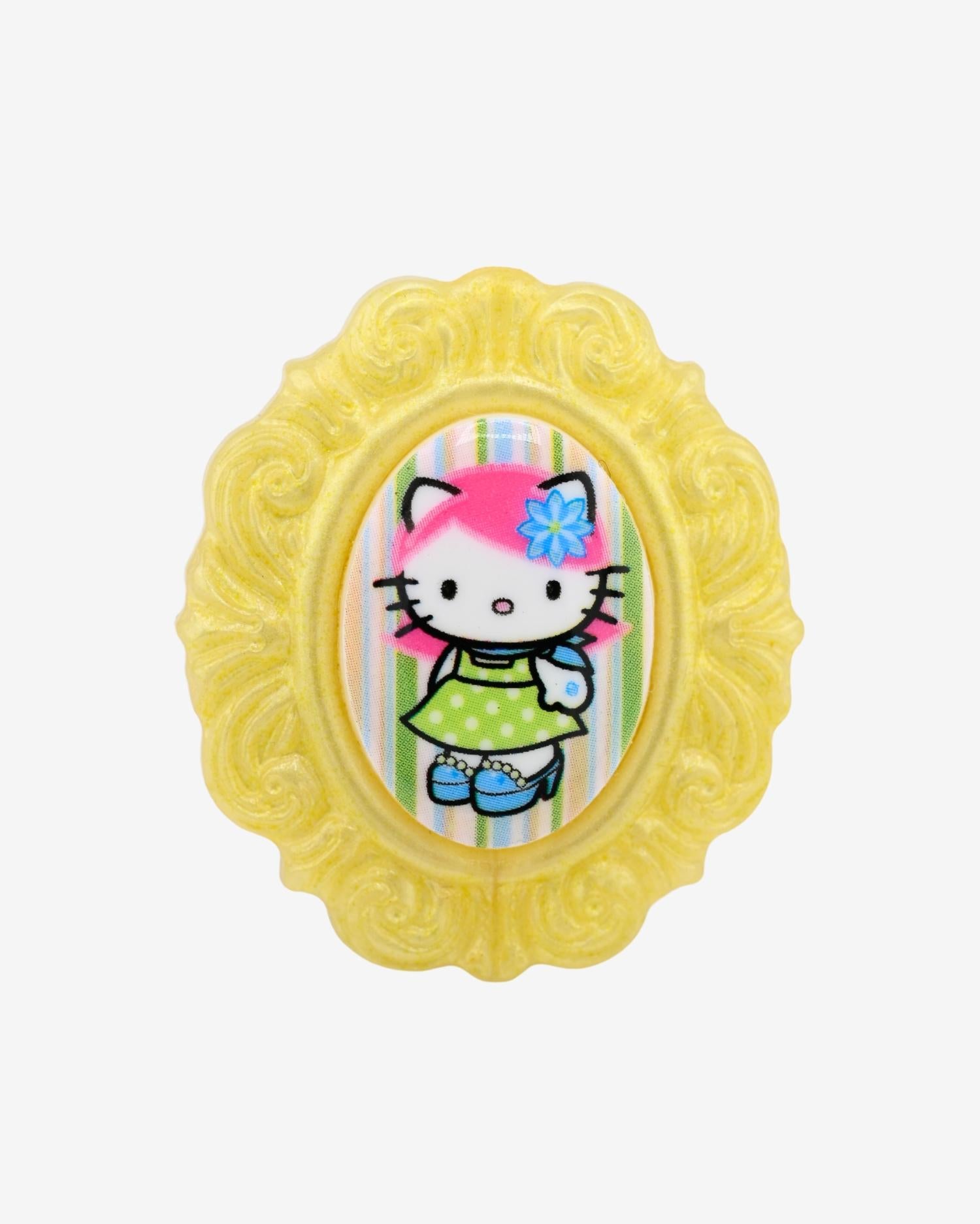 Adjustable ring featuring Hello Kitty x Tarina Tarantino "Pink Head" collection cameo in a baroque style lucite frame.