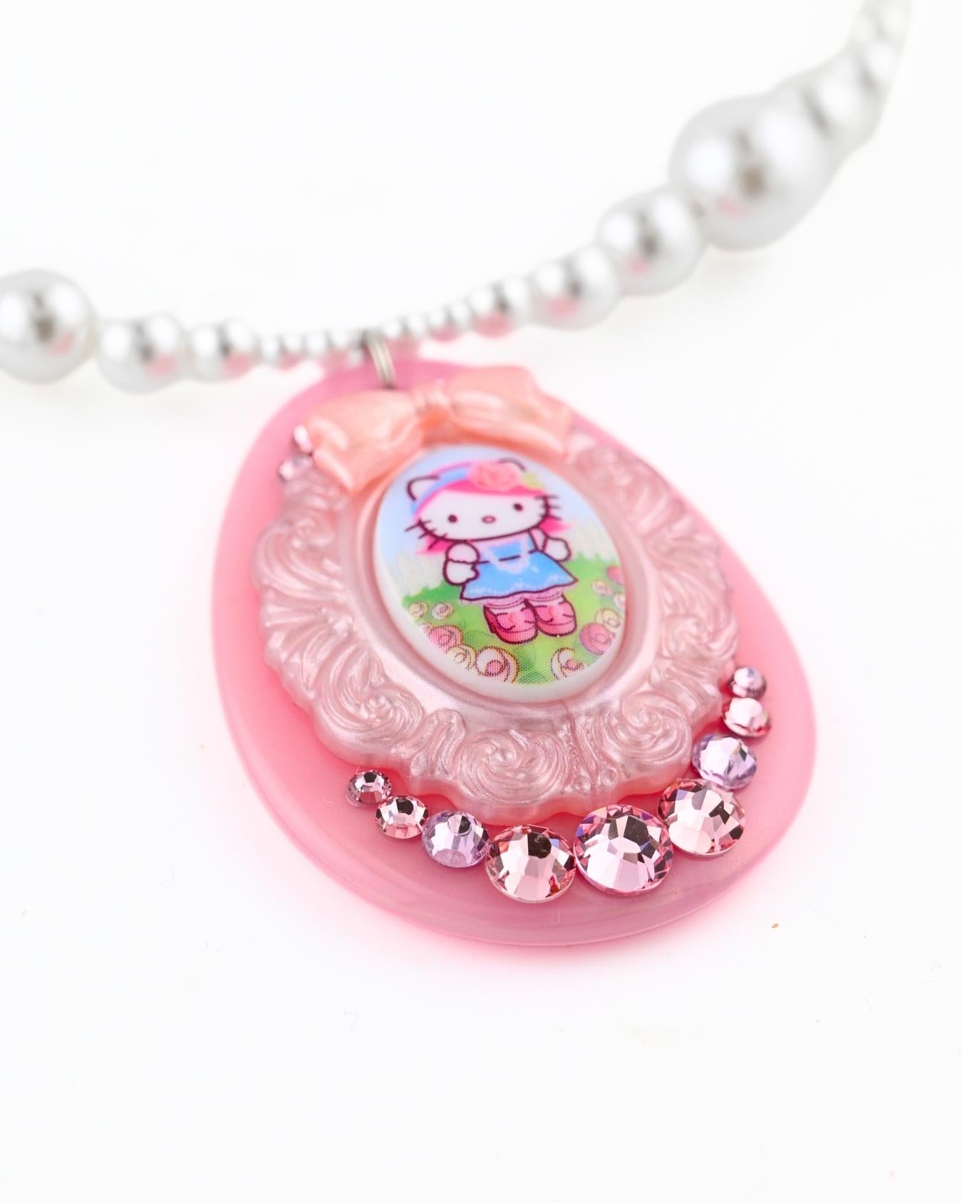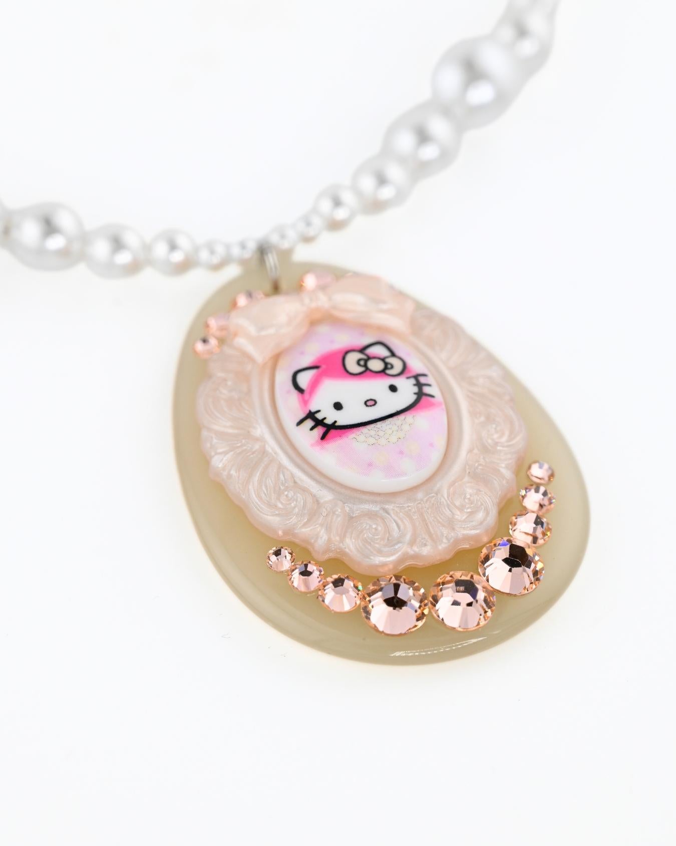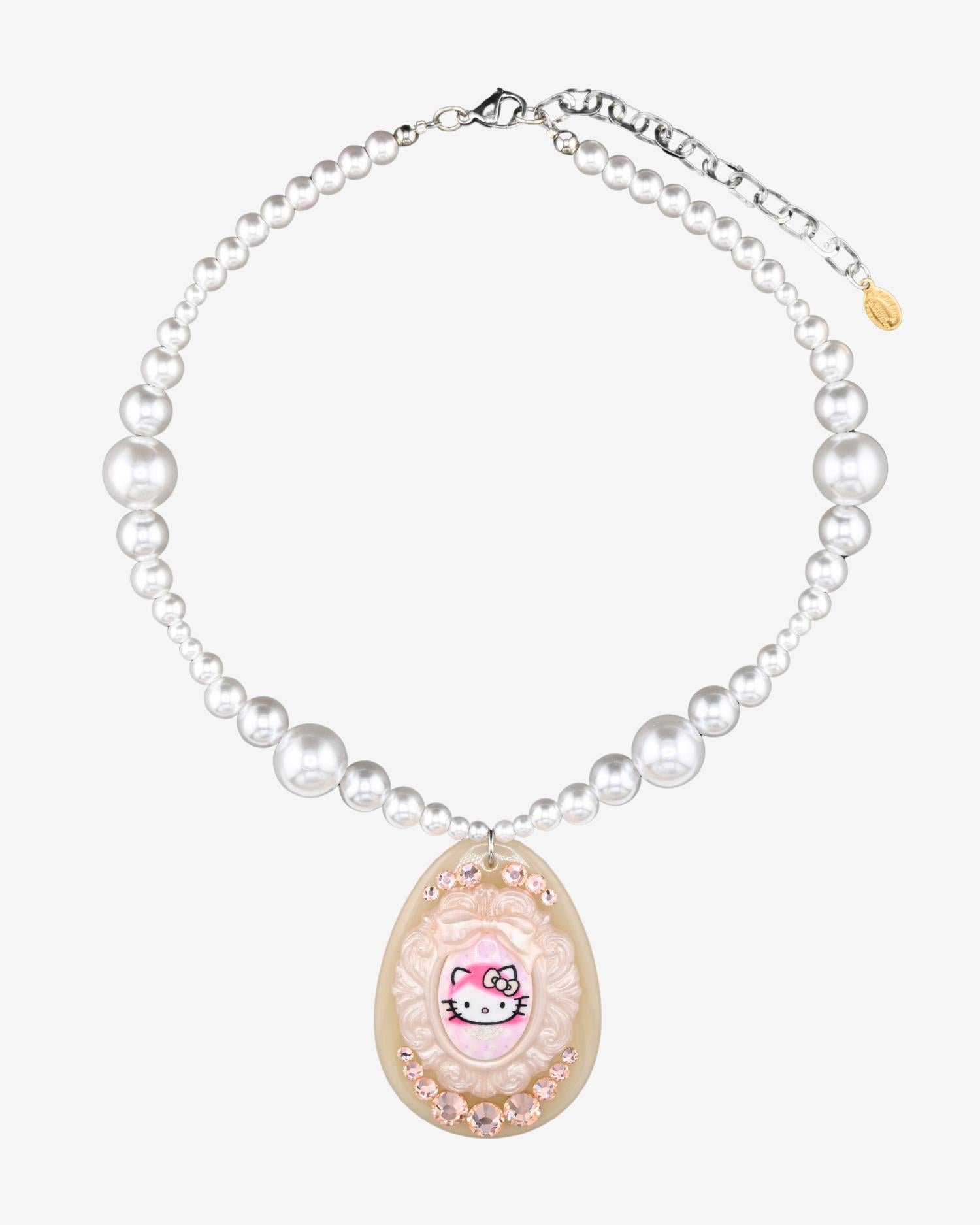 Hello Kitty Pink Head x Tarina Tarantino collection cameo's are framed in our exclusive candy colored baroque pendants and Swarovski crystal and laced onto graduated glass pearls.