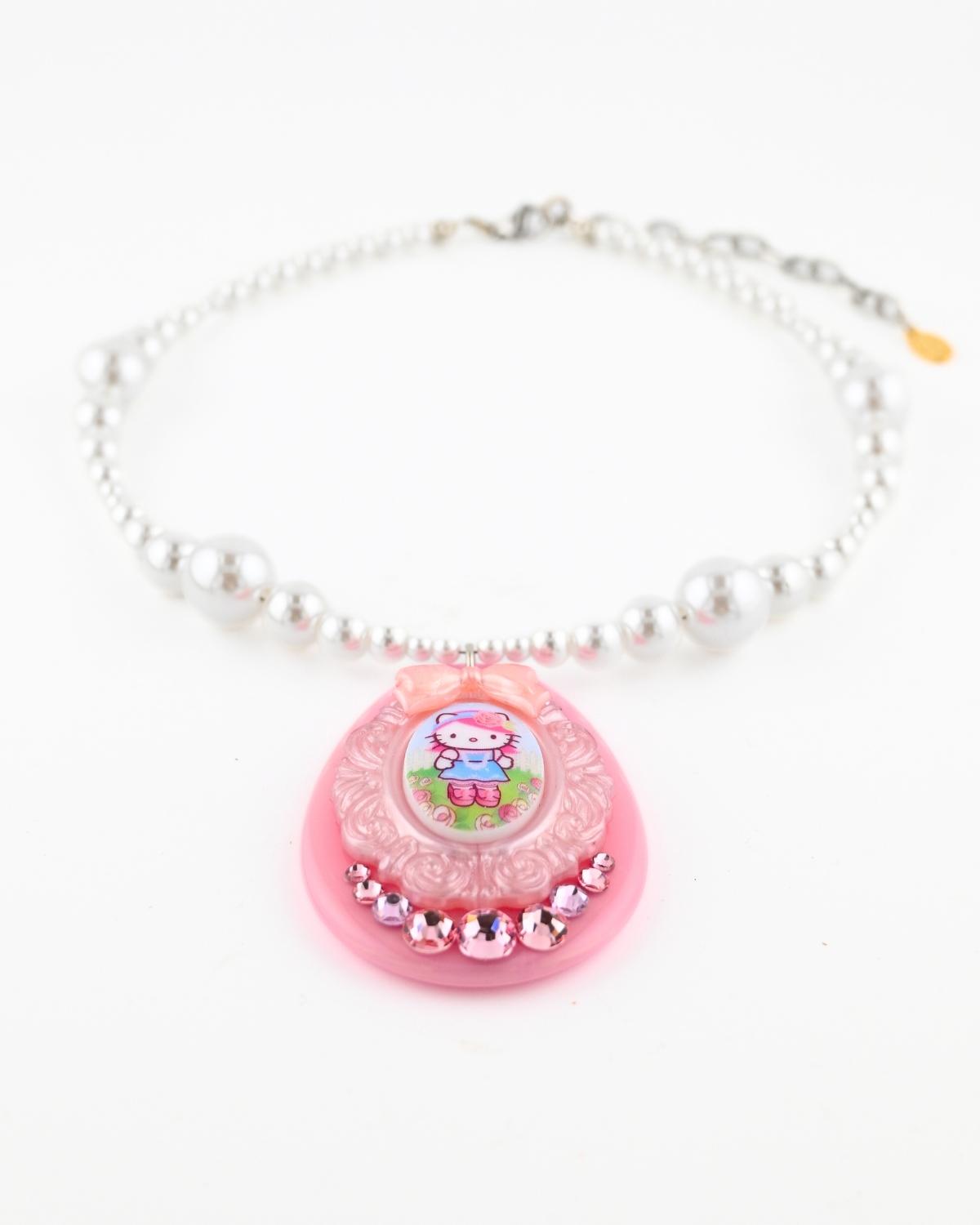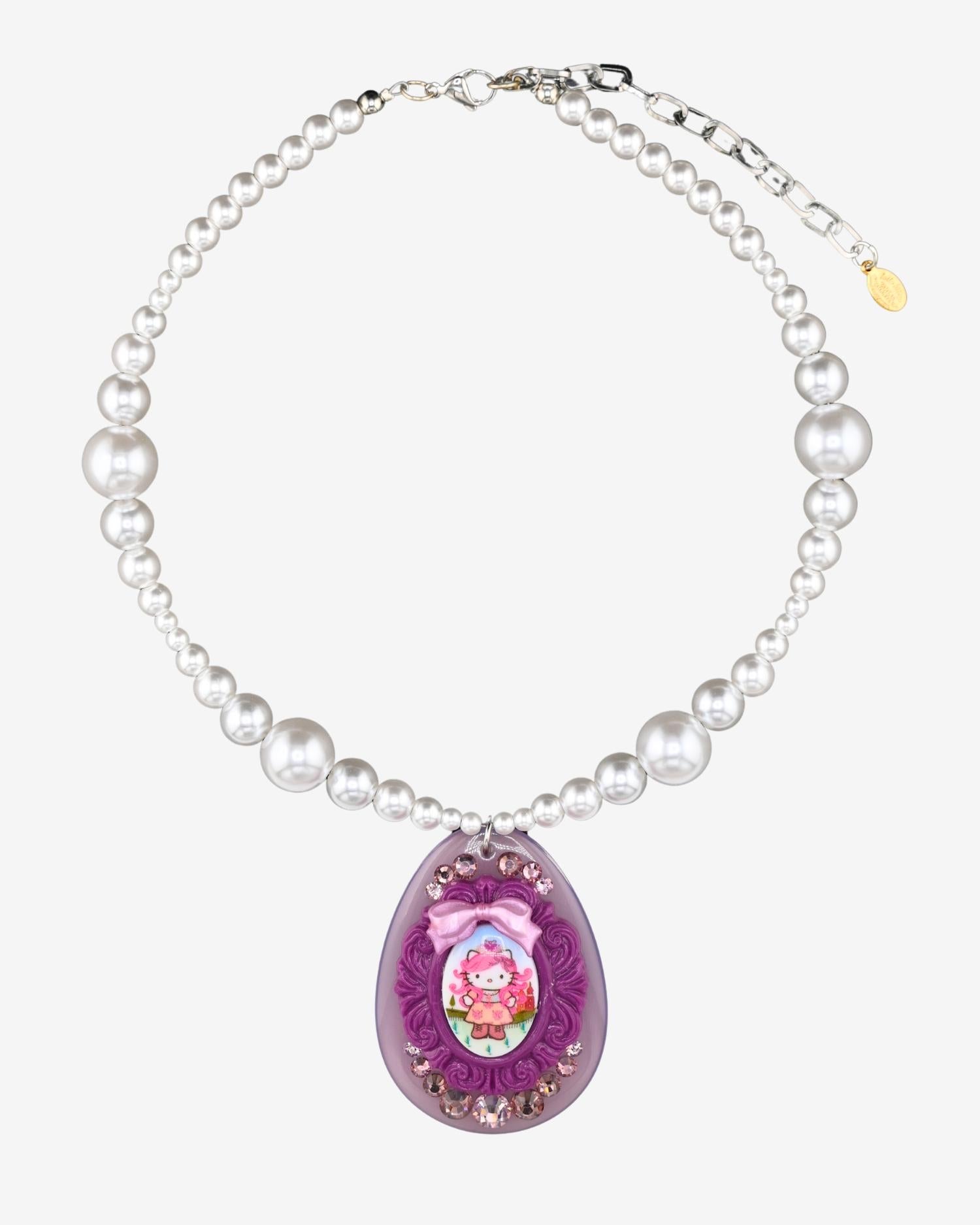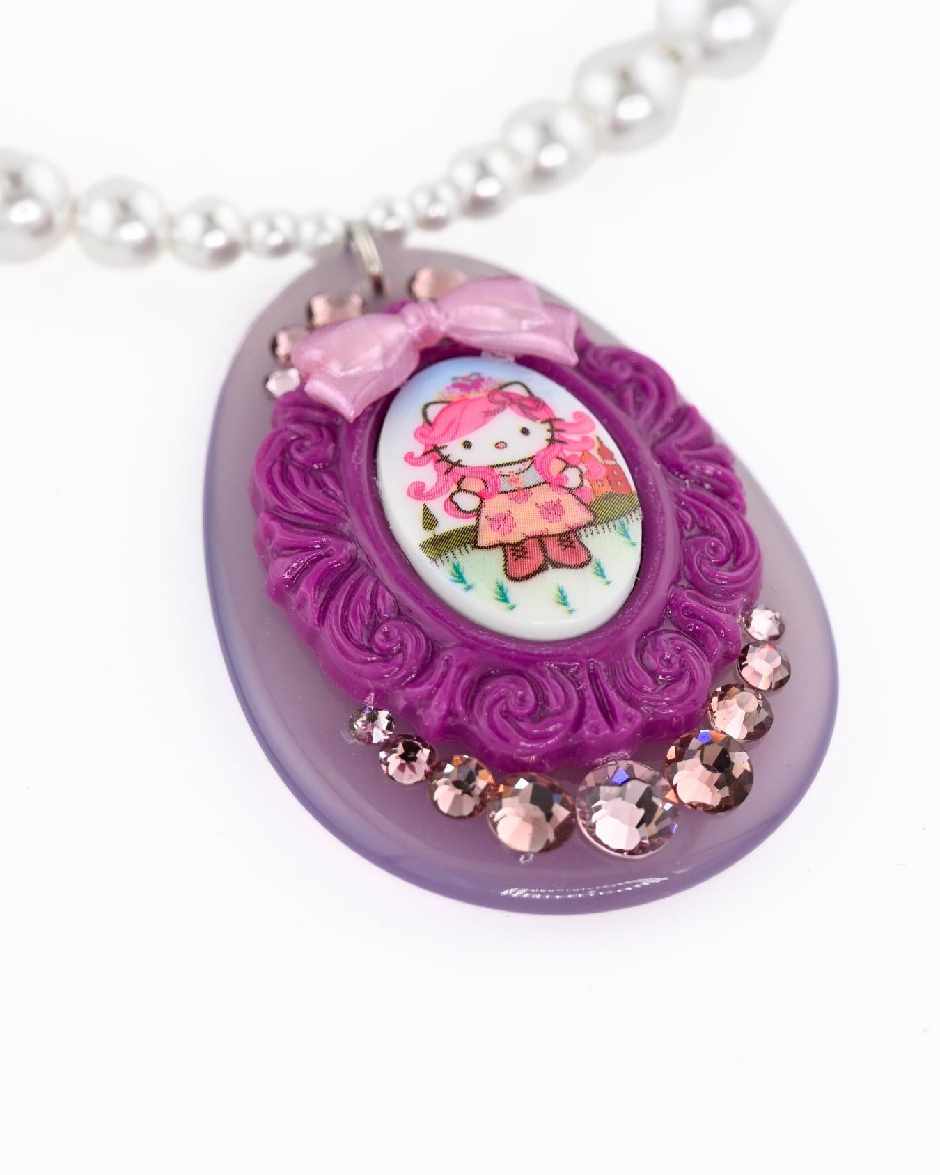 Hello Kitty Pink Head x Tarina Tarantino collection cameo's are framed in our exclusive candy colored baroque pendants and Swarovski crystal and laced onto graduated glass pearls.