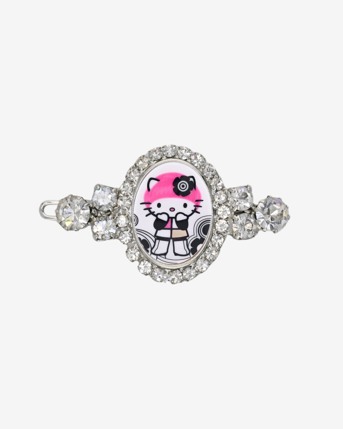 This is not a just hair clip - this is hair jewelry. Kitty Portrait Jeweled Clip features intricately crafted resin cameos framed by sparkling Swarovski crystals. The French lock closure ensures a secure and comfortable fit.