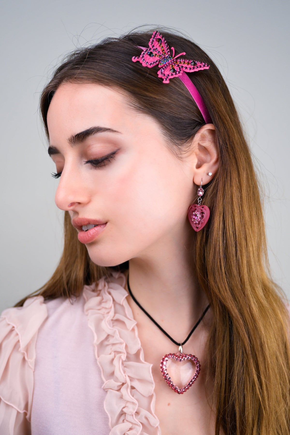 All collections are designed and handmade at Hollywood Wonderland in Los Angeles. This allows us to oversee every detail from sketch to final piece. Most of our collections feature custom-made or vintage materials chosen from our vast Sparkle Factory archives.