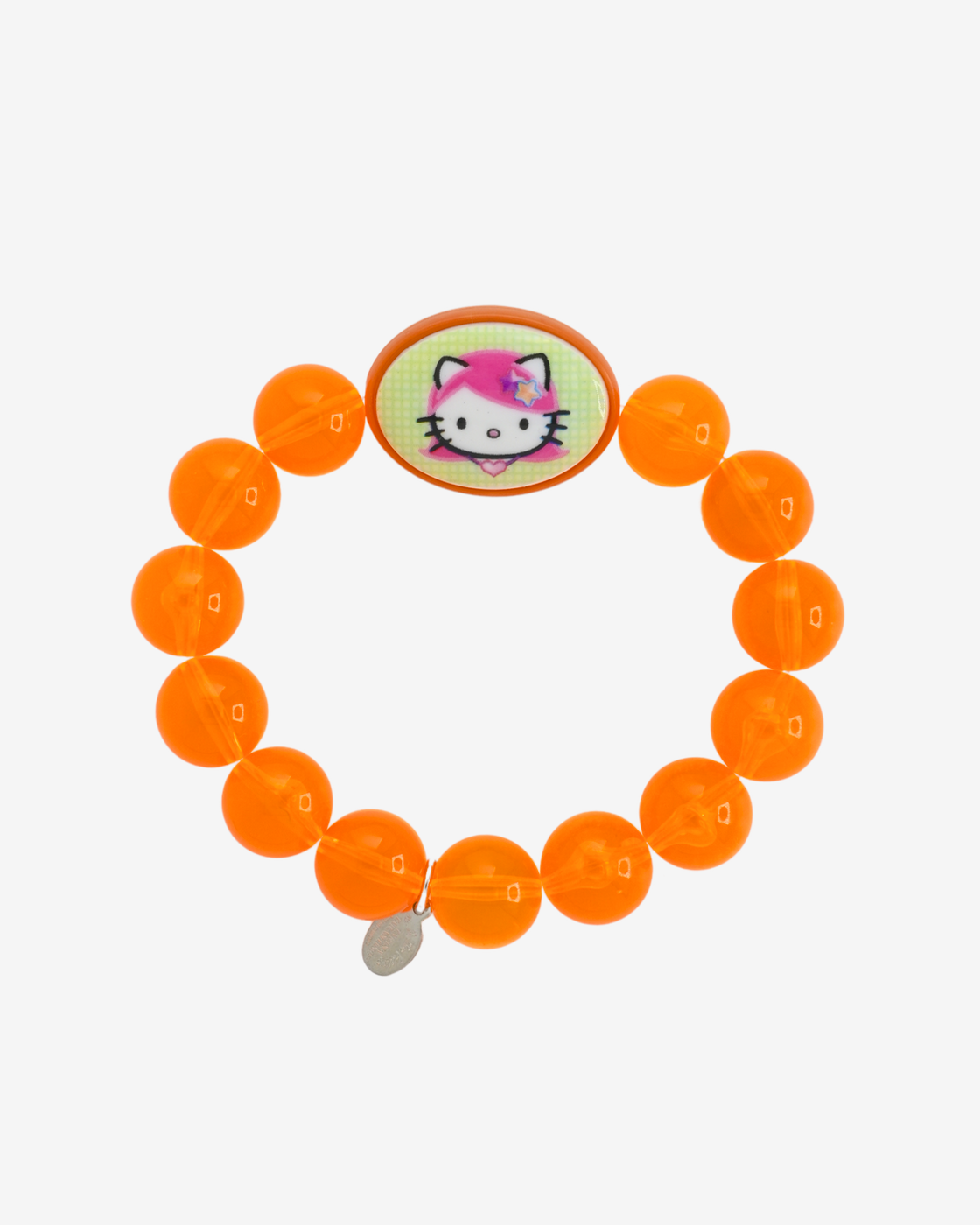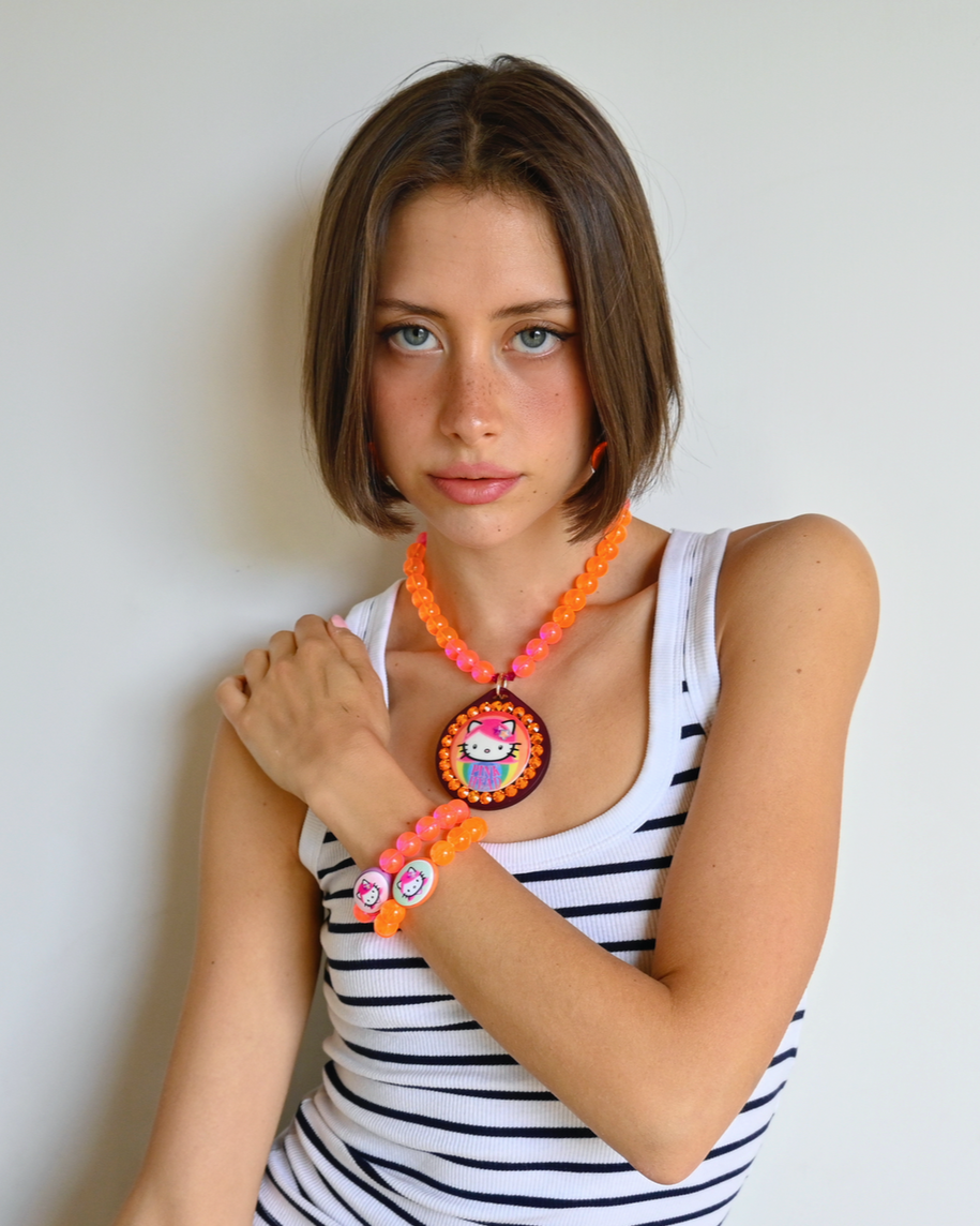Neon Bracelet featuring our signature glowing neon lucite beads and Hello Kitty x Tarina "Pink Head" collection cameo double-sided slider.