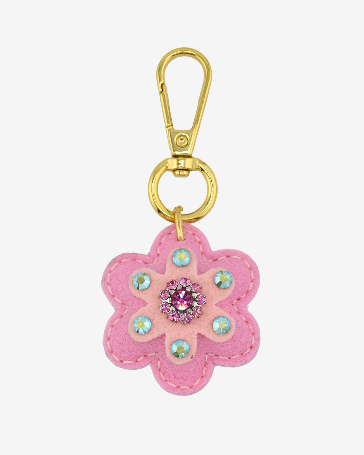A lightweight and sweet puffy felt flower embellished with Swarovski crystal on gold snap clasp.