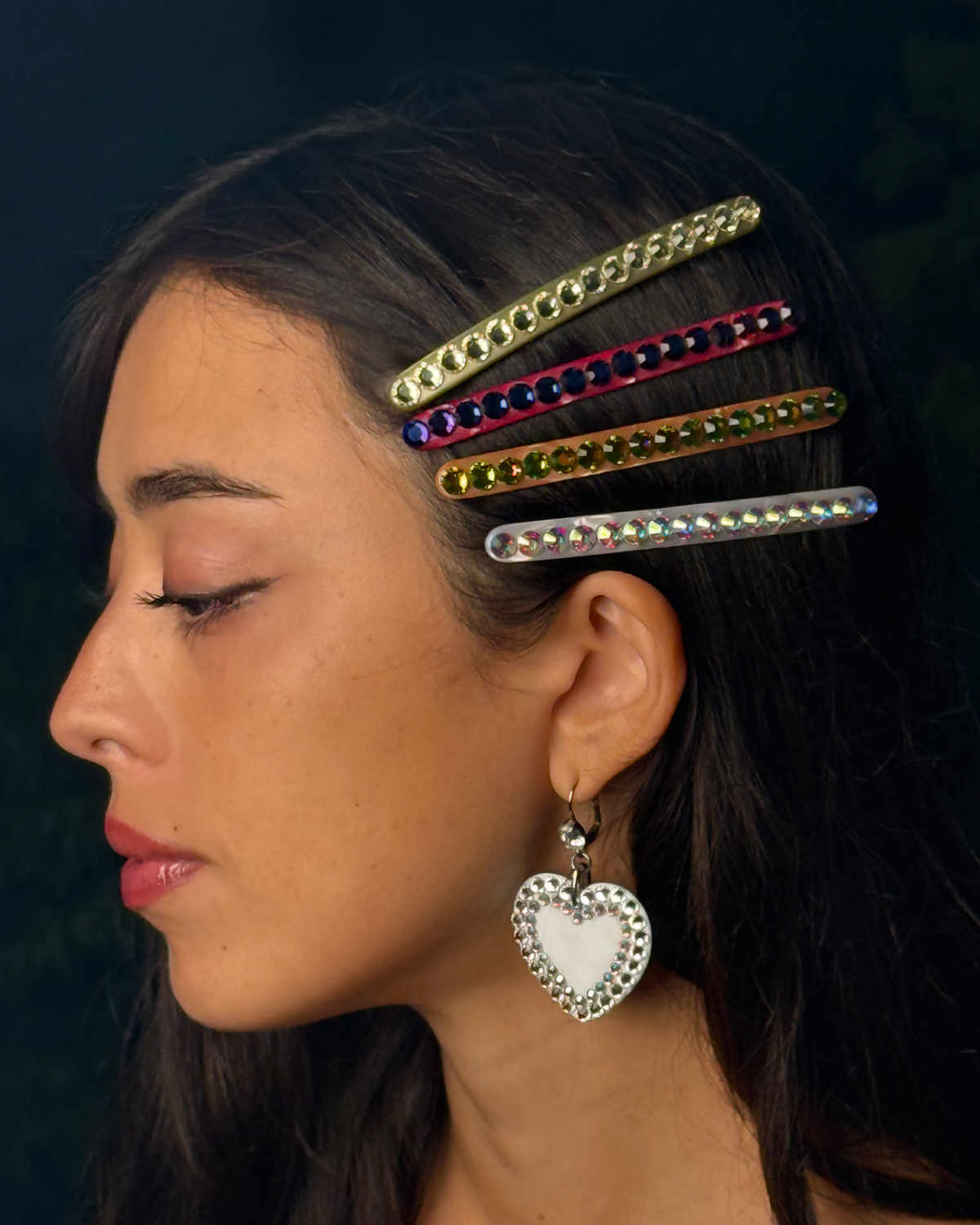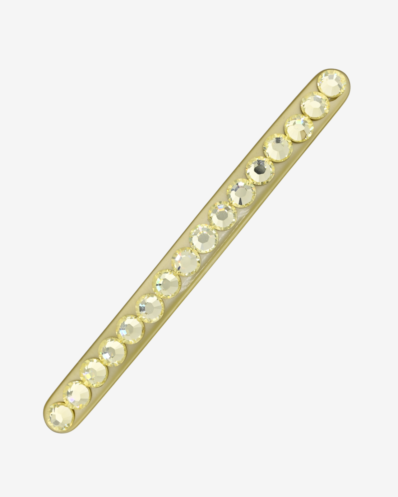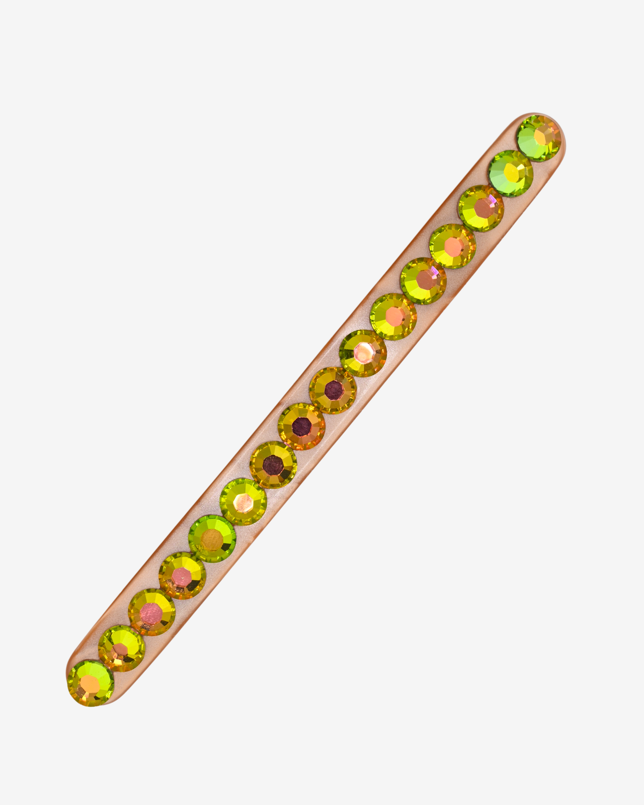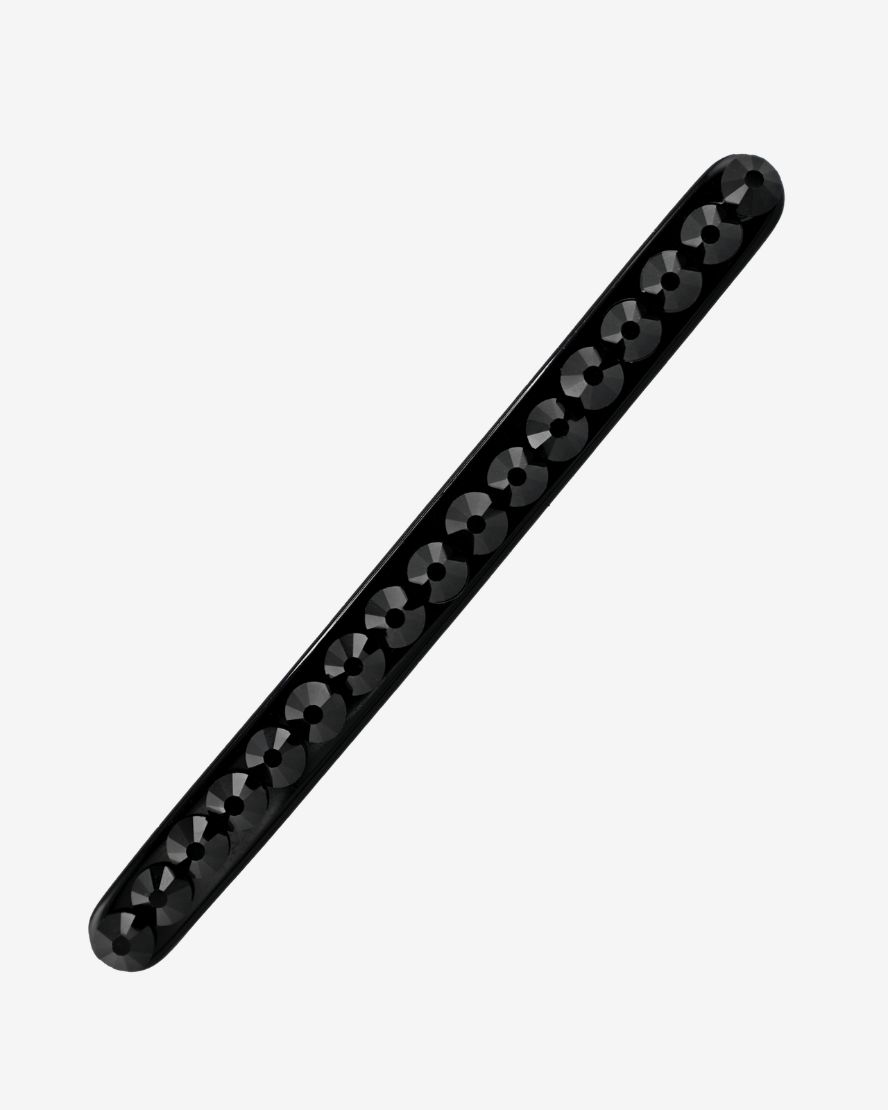 This is not just a hair clip, this is hair jewelry. The super strong slide-lock clip, made in France, can control even the thickest hair. Tally Long features a gorgeous row of sparkling Swarovski Crystal on a cast nylon resin base.